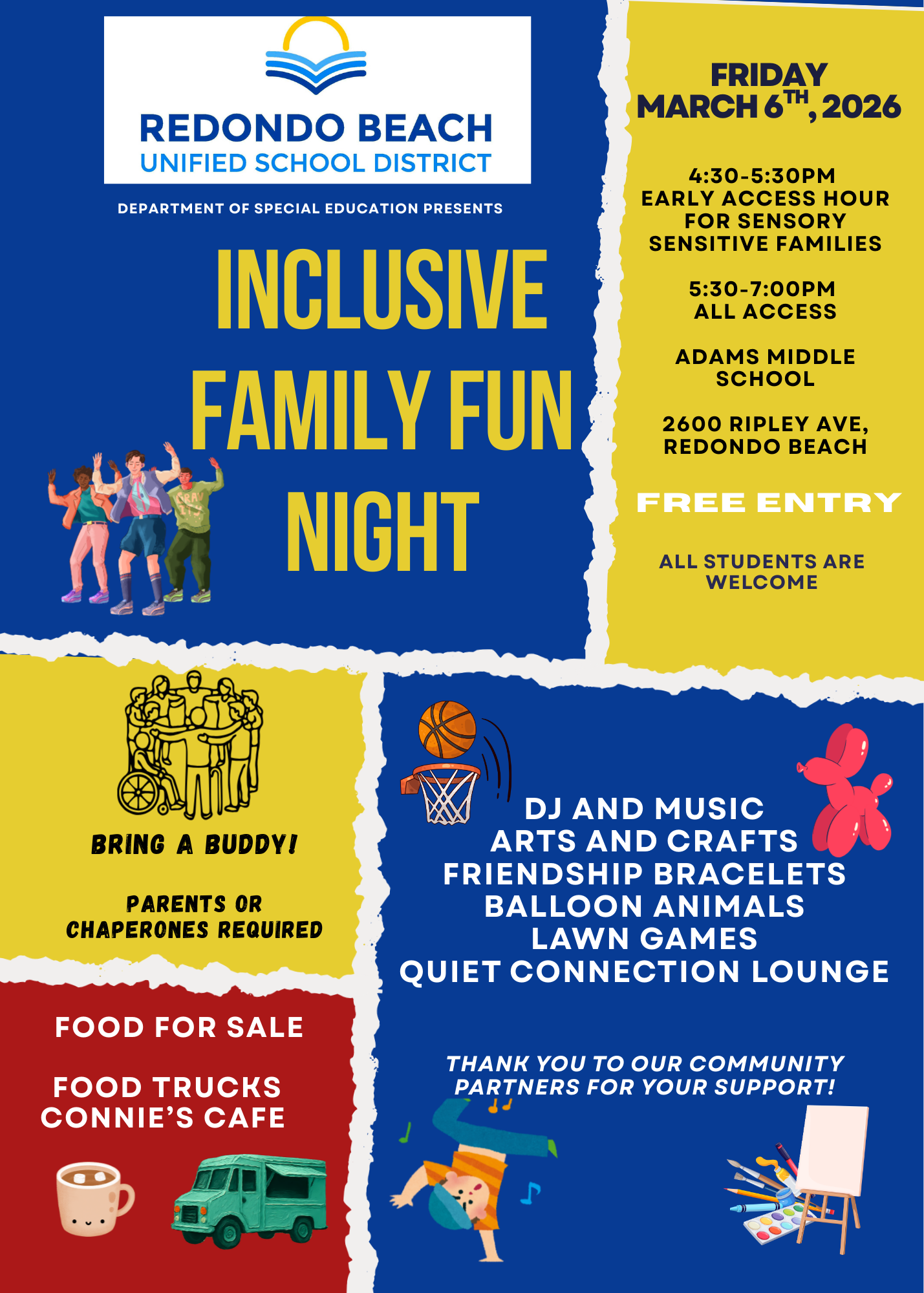 Jefferson has launched a new Friendship Club at our school in partnership with the Friendship Foundation, the local nonprofit that hosts the annual Skechers Pier to Pier Friendship Walk. Our Friendship Club is a once-a-month lunchtime club using games and activities to help students learn friendship building skills. If you have a student with special needs and/or social challenges who would benefit from extra practice with their peers, or if you have a student who wants to help their peers work on friendship skills, please invite them to check out our club. The club meets the 2nd Thursday of every month. We are requesting that each club member submit an application, but students can complete it after their first visit if preferred. We are requesting that each club member submit an application. We are also looking for parent volunteers to help facilitate the club. Contact specialed@jeffersonptarb.org for more information.